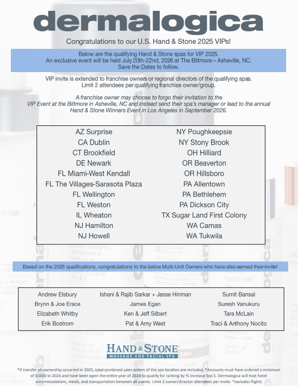 These standout spas and leaders have earned an exclusive, all-expense-paid trip to West Palm Beach, FL – March 9–12 for their exceptional performance in retail, upgrades, prebooking, and team leadership.
